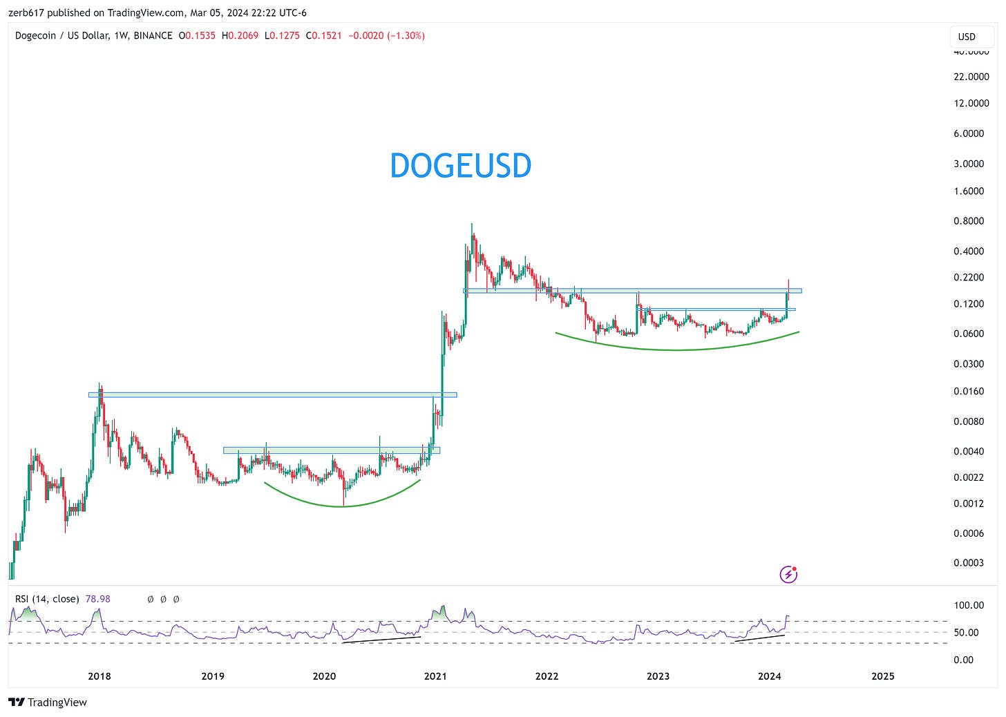 It’s important to remember that new All-Time Highs after a massive base usually lead to more All-Time Highs later. Folks like Tom Brady and Matt Damon were pumping crypto back in 2022. Folks who got caught up in the hype of “laser eyes” and FOMO and bought the “Top” in 2022, finally found themselves down -75% a year later. They are just now breaking even if they held on this entire time. They painfully learned that just because you reach All-Time Highs doesn’t mean new highs will come immediately afterward.