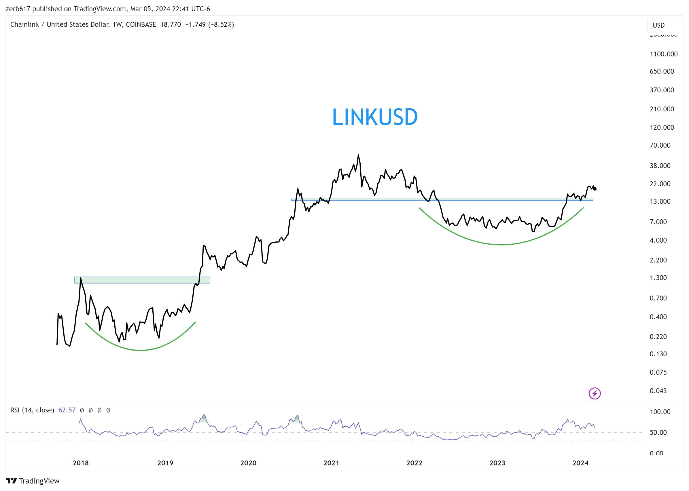 Chainlink (LINKUSD) lead the charge for altcoins back at the start of the year, and broke out of its base. We are starting to see other names such as Solana (SOLUSD), and Avalanche (AVAXUSD) follow.