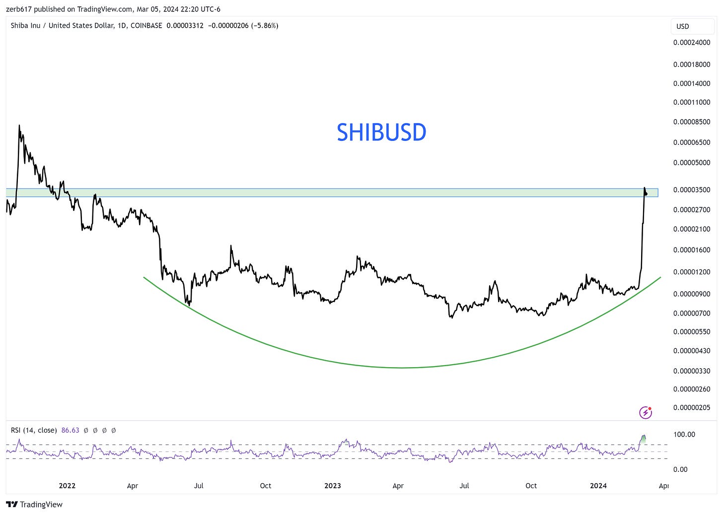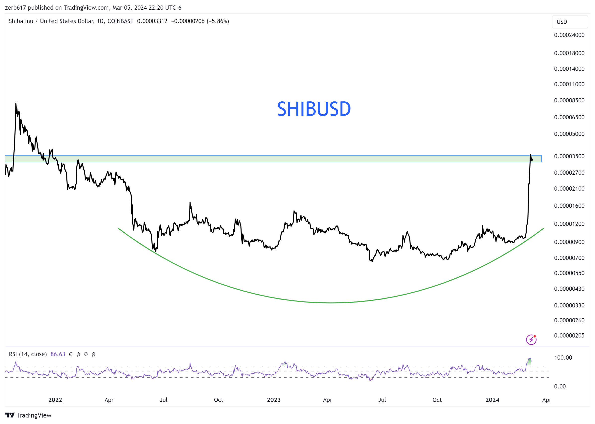 What’s more interesting to me, is how far this is trickling down. This past week we’ve seen long-forgotten shitcoin names like Dogecoin (DOGEUSD) +80% and Shibu Ina (SHIBUSD) +46% getting bought up in a crypto feeding frenzy.